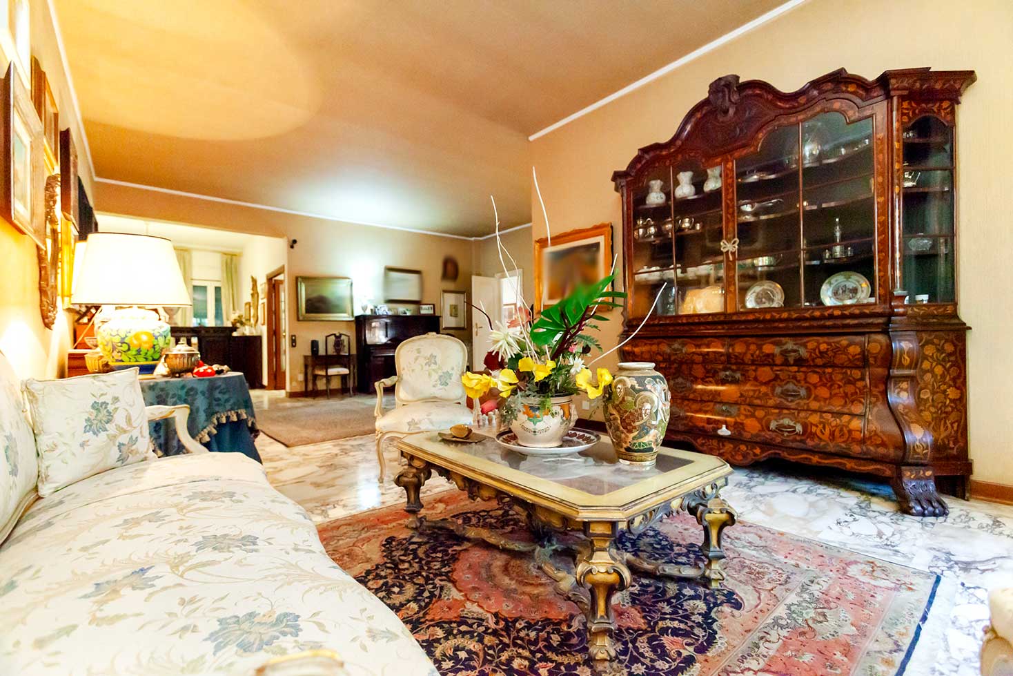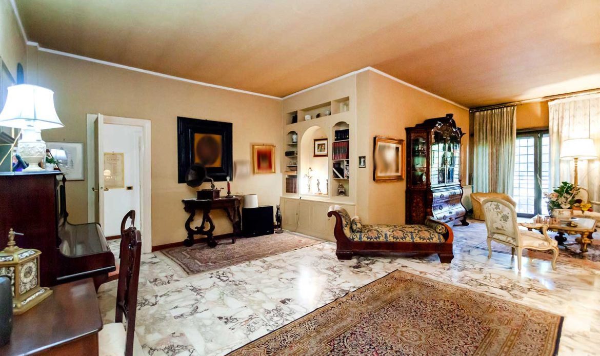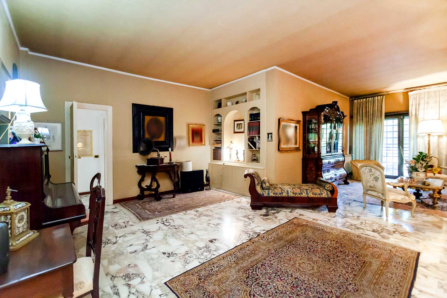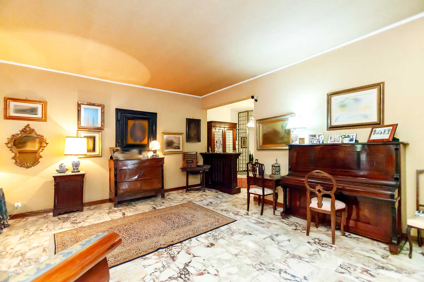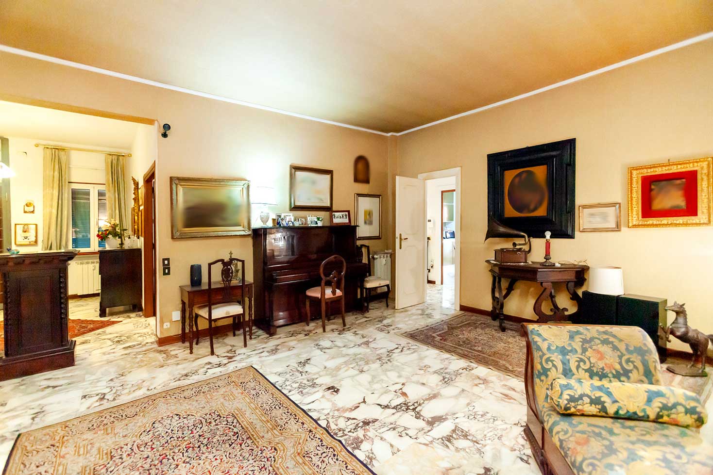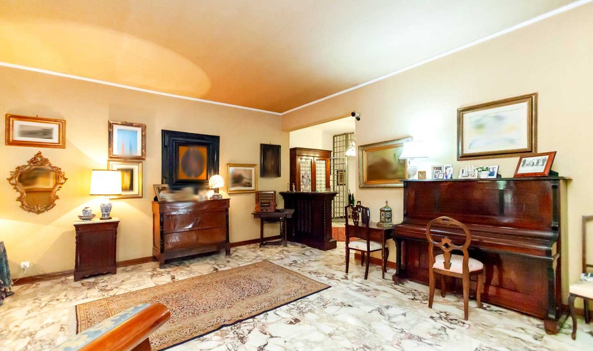 Le condizioni interne sono buone, con pavimenti della zona giorno in marmo, parquet originale dell’epoca restaurato in una delle camere matrimoniali e con i servizi ristrutturati in tempi recenti.