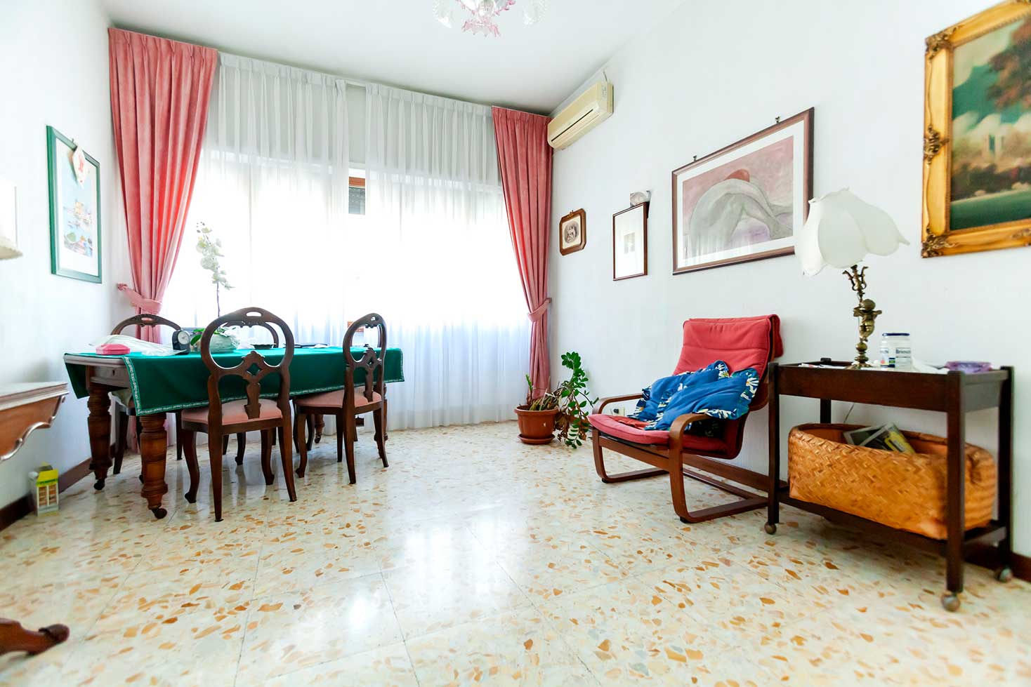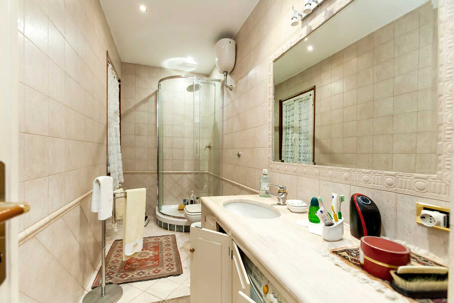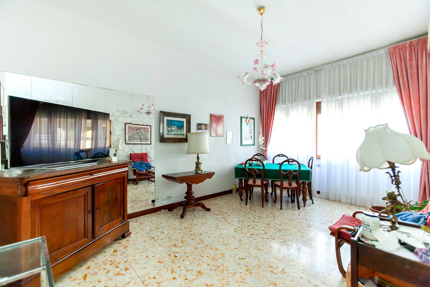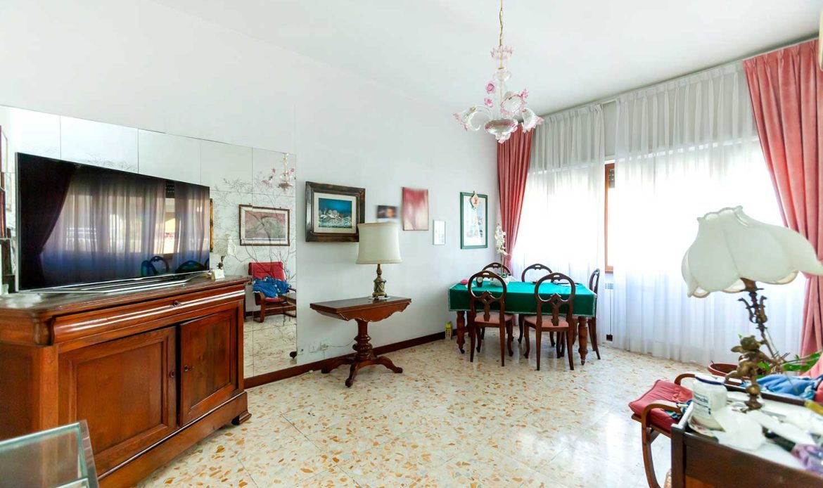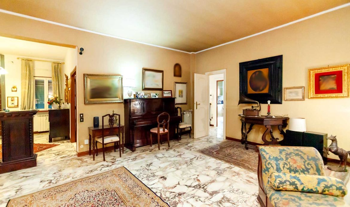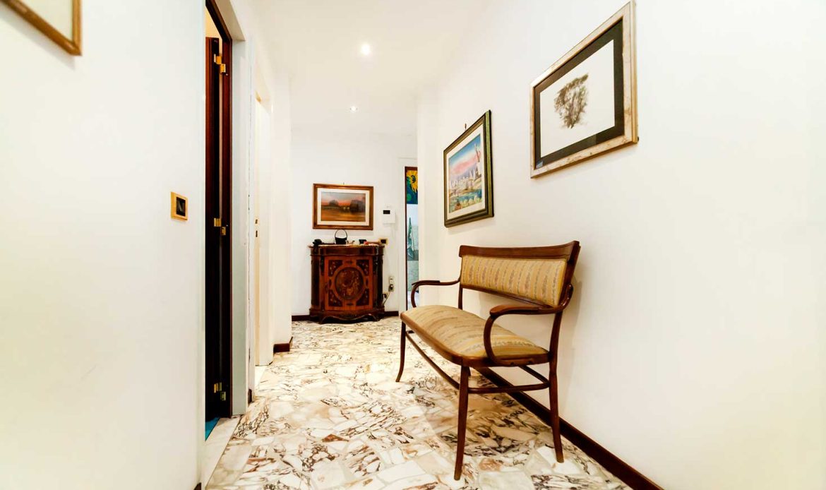Le condizioni interne sono buone, con pavimenti della zona giorno in marmo, parquet originale dell’epoca restaurato in una delle camere matrimoniali e con i servizi ristrutturati in tempi recenti.