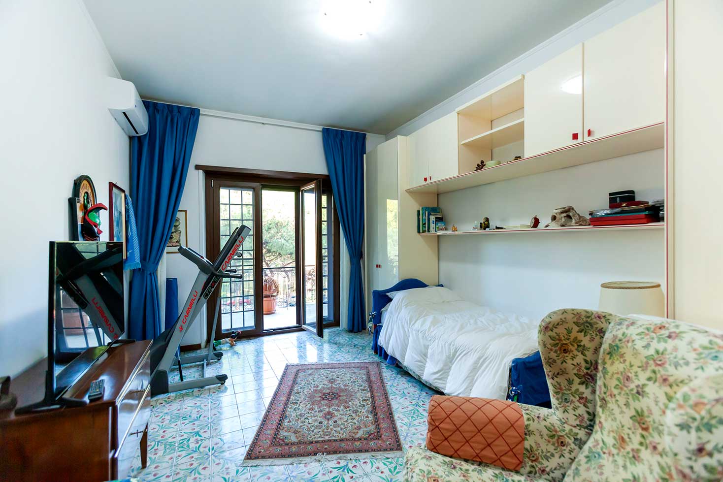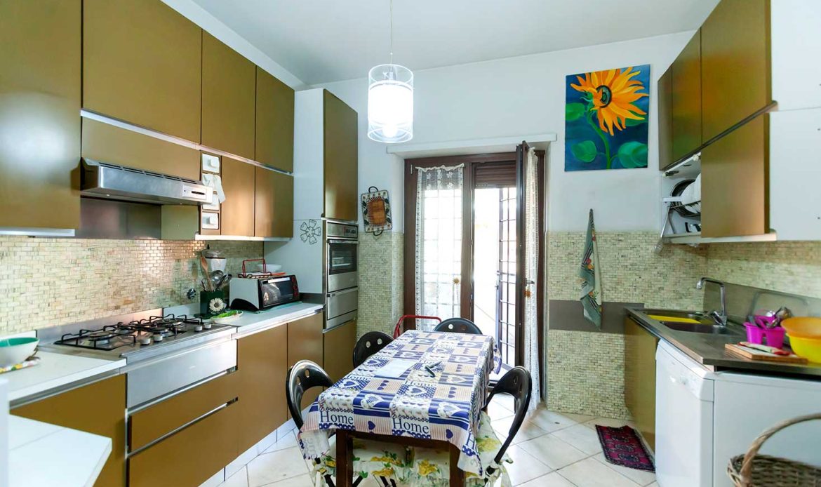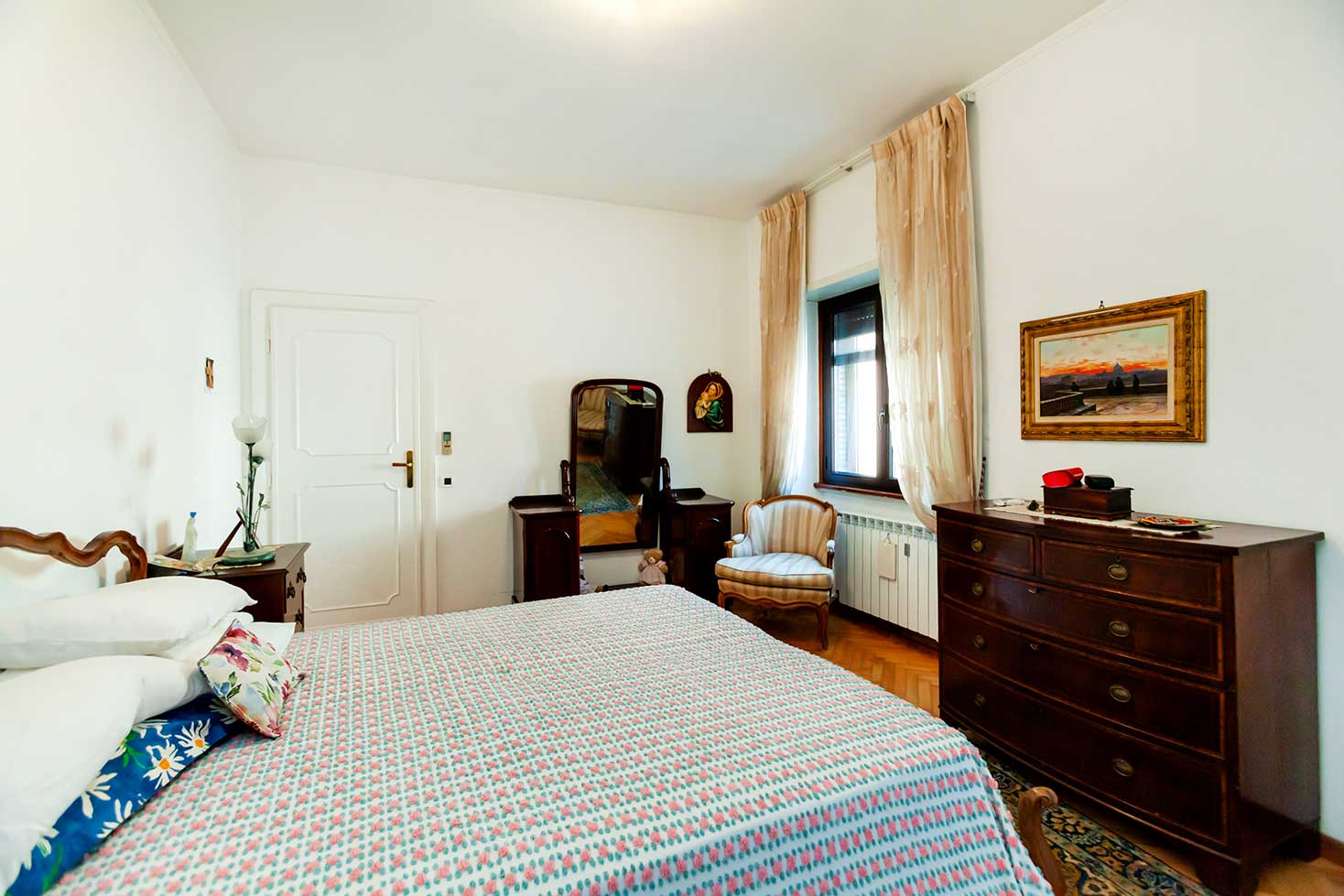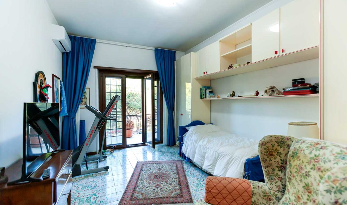 L’abitazione è così composta: Ingresso con salone a vista di ca. 60 mq, tre camere matrimoniali, cameretta, cucina abitabile, due bagni, due balconi di cui uno abitabile ( 12m x2m ) con affaccio aperto su Villa Lazzaroni, ripostiglio.