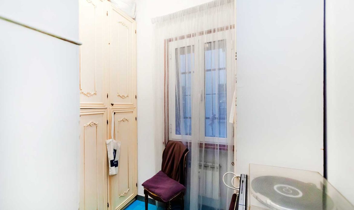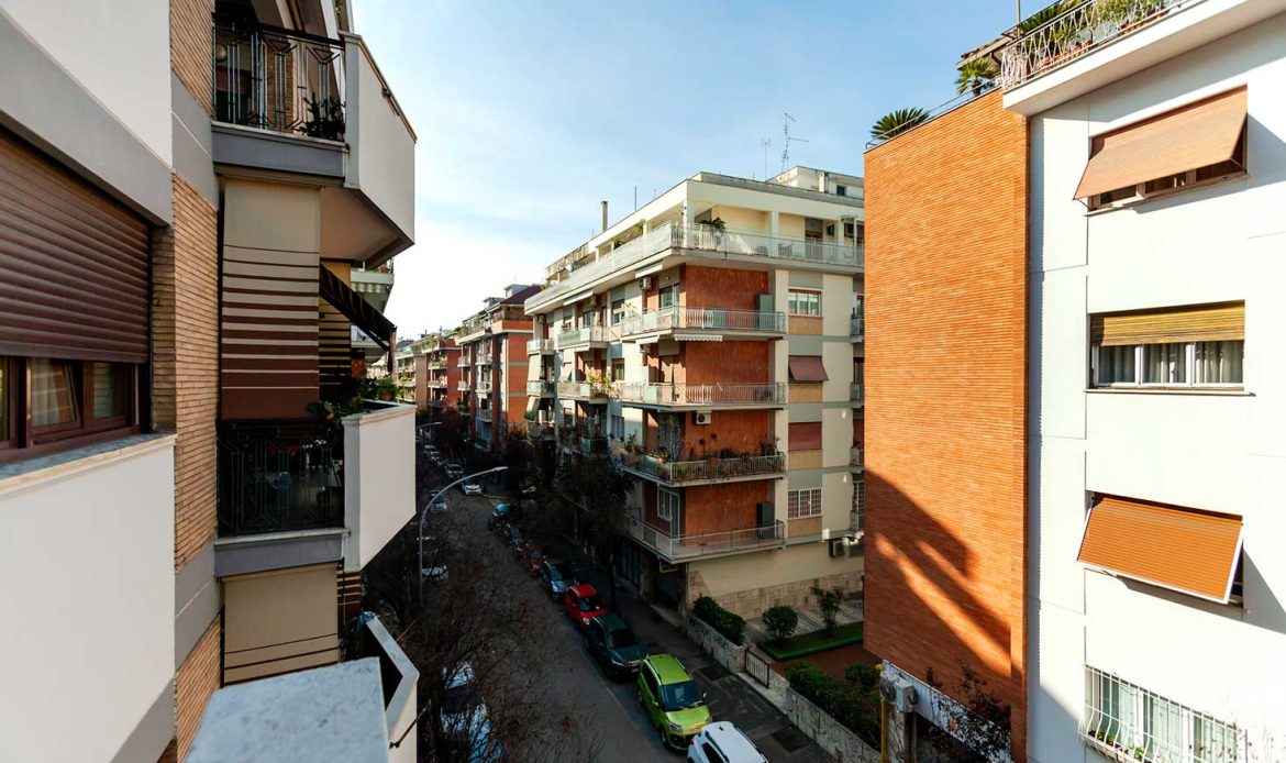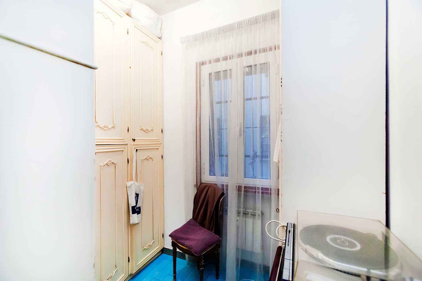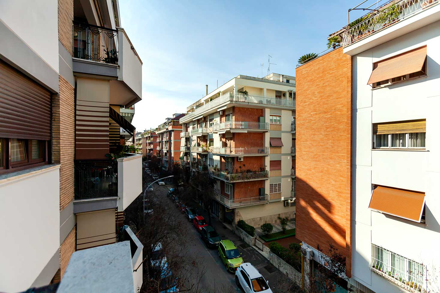 La casa espone ad angolo, il salone e due camere verso Villa lazzaroni, il resto di casa sulla via Adolfo Omodeo.