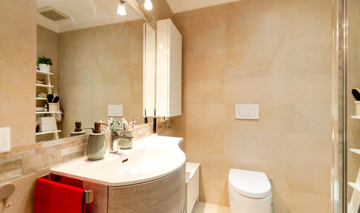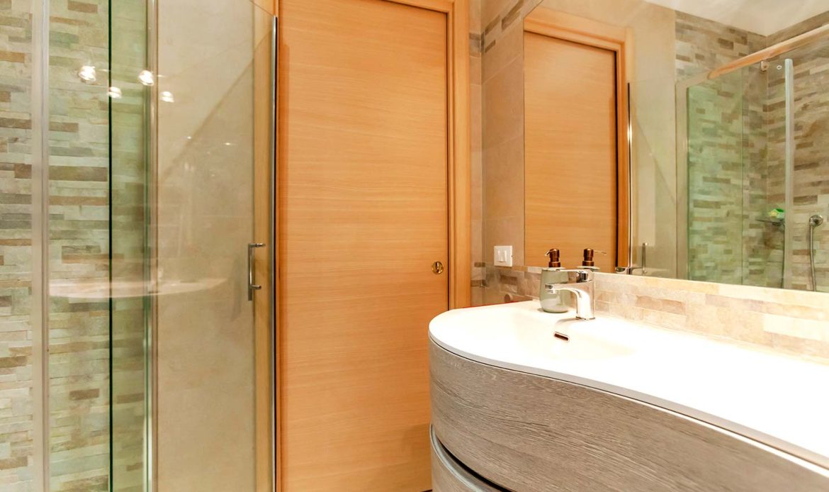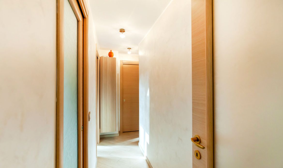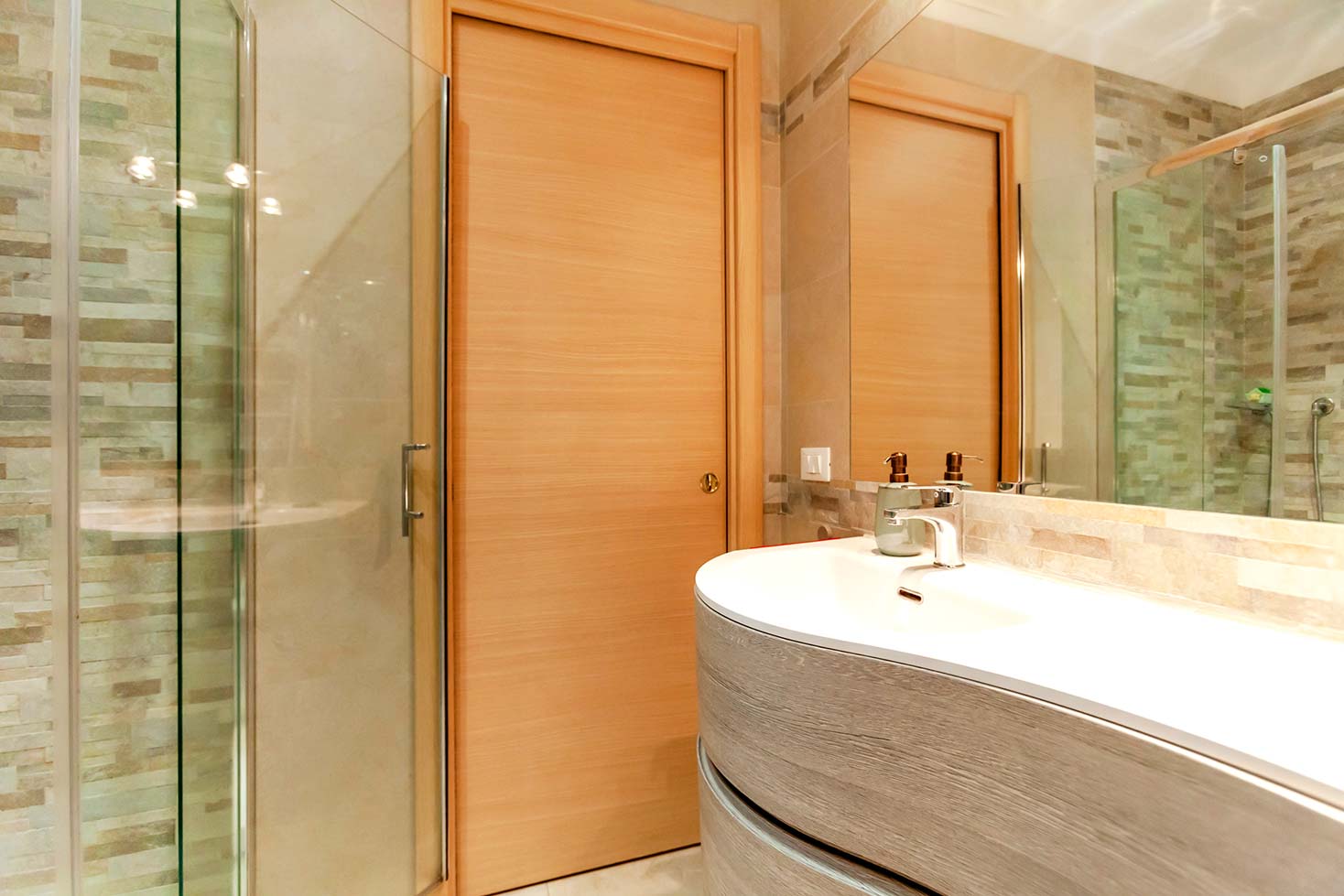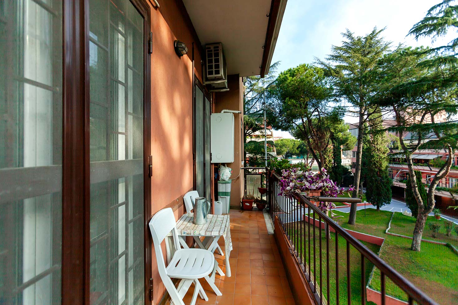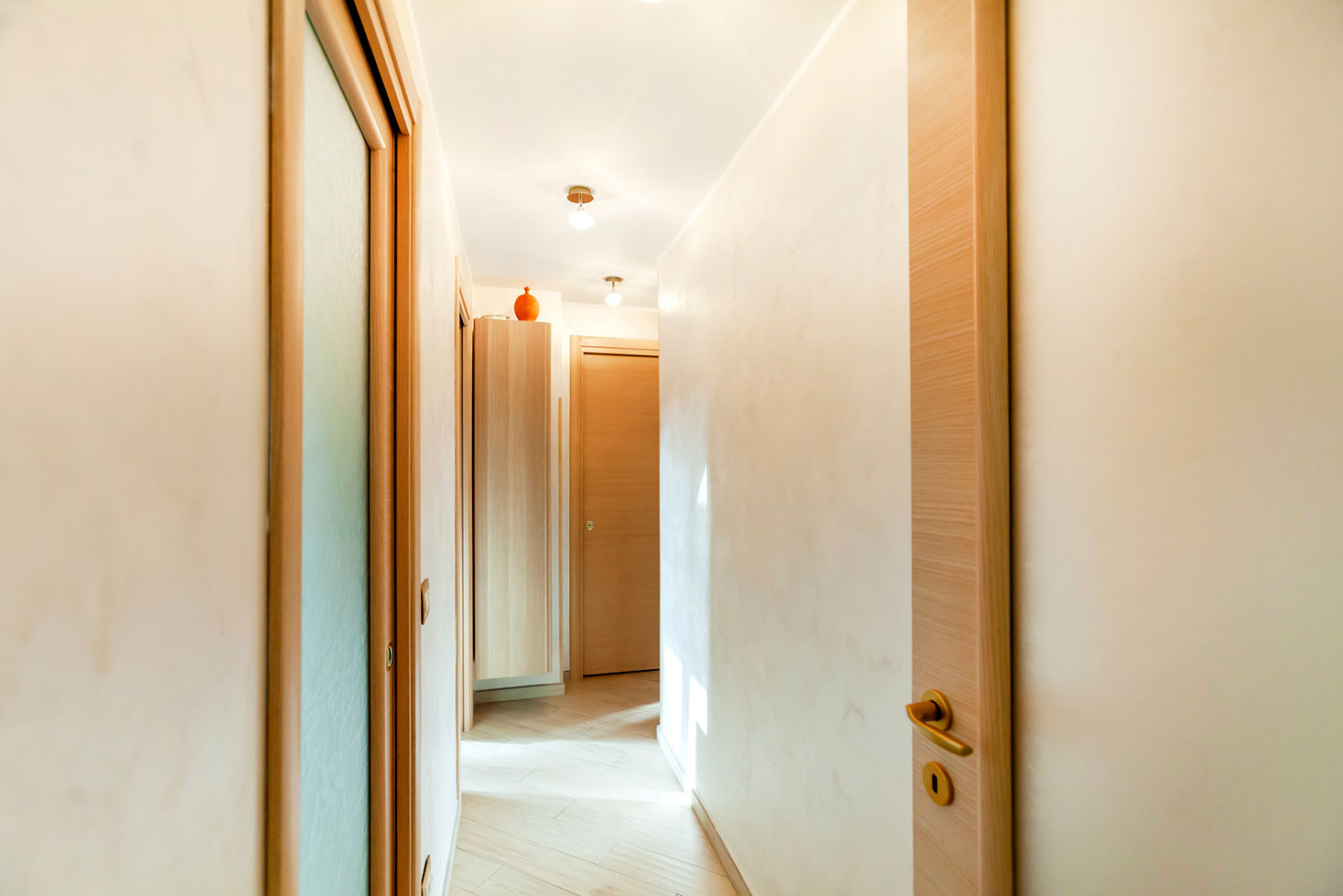 Ingresso con soggiorno a vista, due camere, cucina, due bagni, balcone, cantina al piano seminterrato. La casa è in ottime condizioni, ristrutturata nel 2014 con tutte le certificazioni degli impianti elettrico/idraulico, infissi con doppio vetro, porta blindata, aria condizionata.
