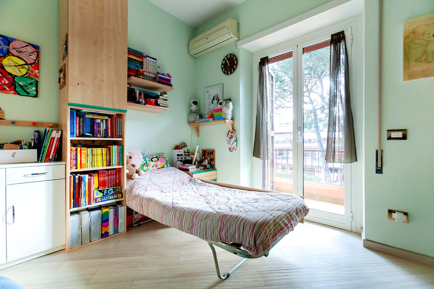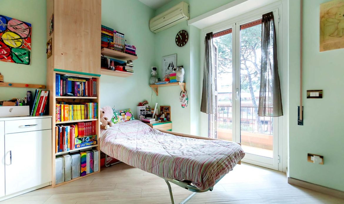 Luminiosa con esposizione ad est e silenziosa, con affaccio sul verde. Parcheggio biciclette condominiale. Libera.